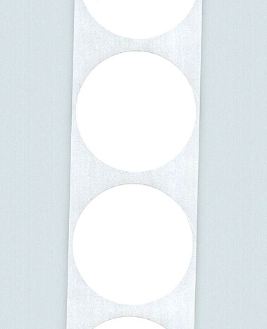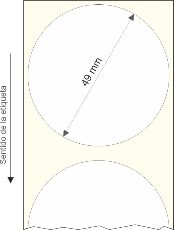 Rollo de etiquetas 49×49 mm, Papel Blanco Brillo Inkjet, Adhesivo Permanente, Circular 49, Rollos de 1.250 etiquetas. Presentación bobinas: Mediana – Ext 76 152