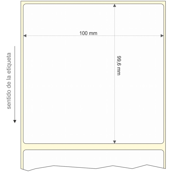 Rollo de etiquetas 100×99,6 mm, Papel Blanco Mate Premium Extra Inkjet, Adhesivo Permanente, Rectangular Cantos Romos , Rollos de 1.300 etiquetas. Presentación bobinas: Grande – Ext 76 203