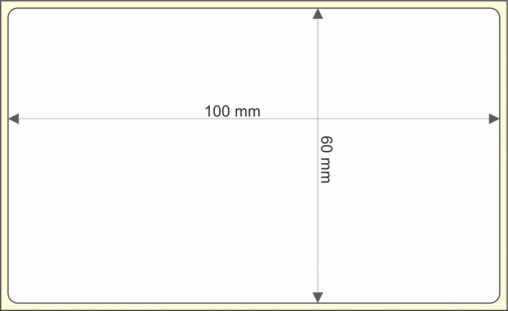 Rollo de etiquetas 100×60 mm, Papel Jetlinen Mate, Adhesivo Perm. Fuerte, Rectangular Cantos Romos , Rollos de 500 etiquetas. Presentación bobinas: Pequeña – Ext 40 127