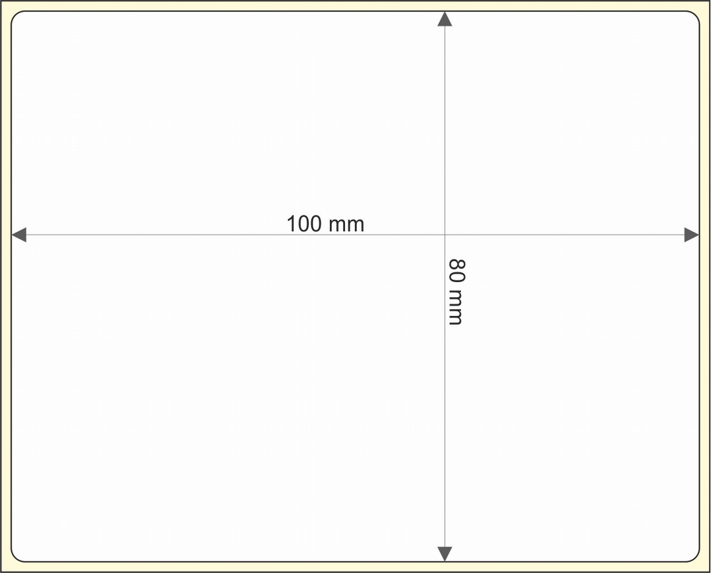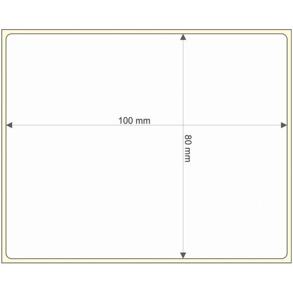 Rollo de etiquetas 100×80 mm, Papel Bco Alto Brillo, Adhesivo Permanente, Rectangular Cantos Romos , Rollos de 2.000 etiquetas. Presentación bobinas: Grande – Ext 76 203
