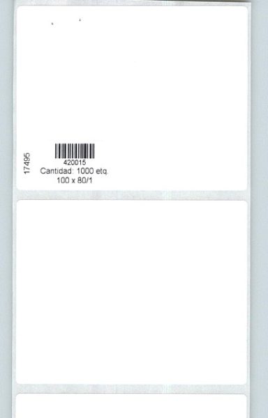 | Nombre 2 Web | Rollo de etiquetas 100×80 mm, Papel Blanco Mate Premium Inkjet, Adhesivo Permanente, Rectangular Cantos Romos , Rollos de 450 etiquetas. Presentación bobinas: Pequeña – Ext 40 127 |