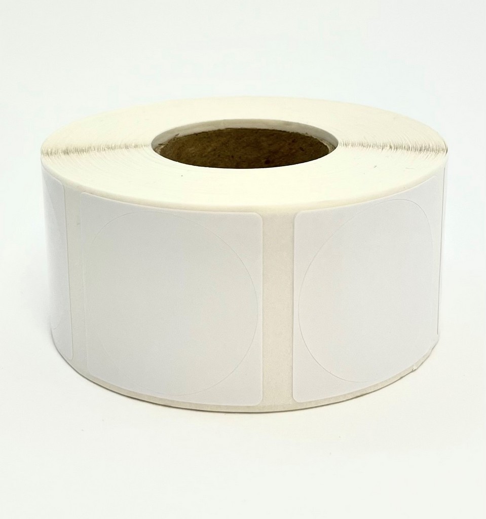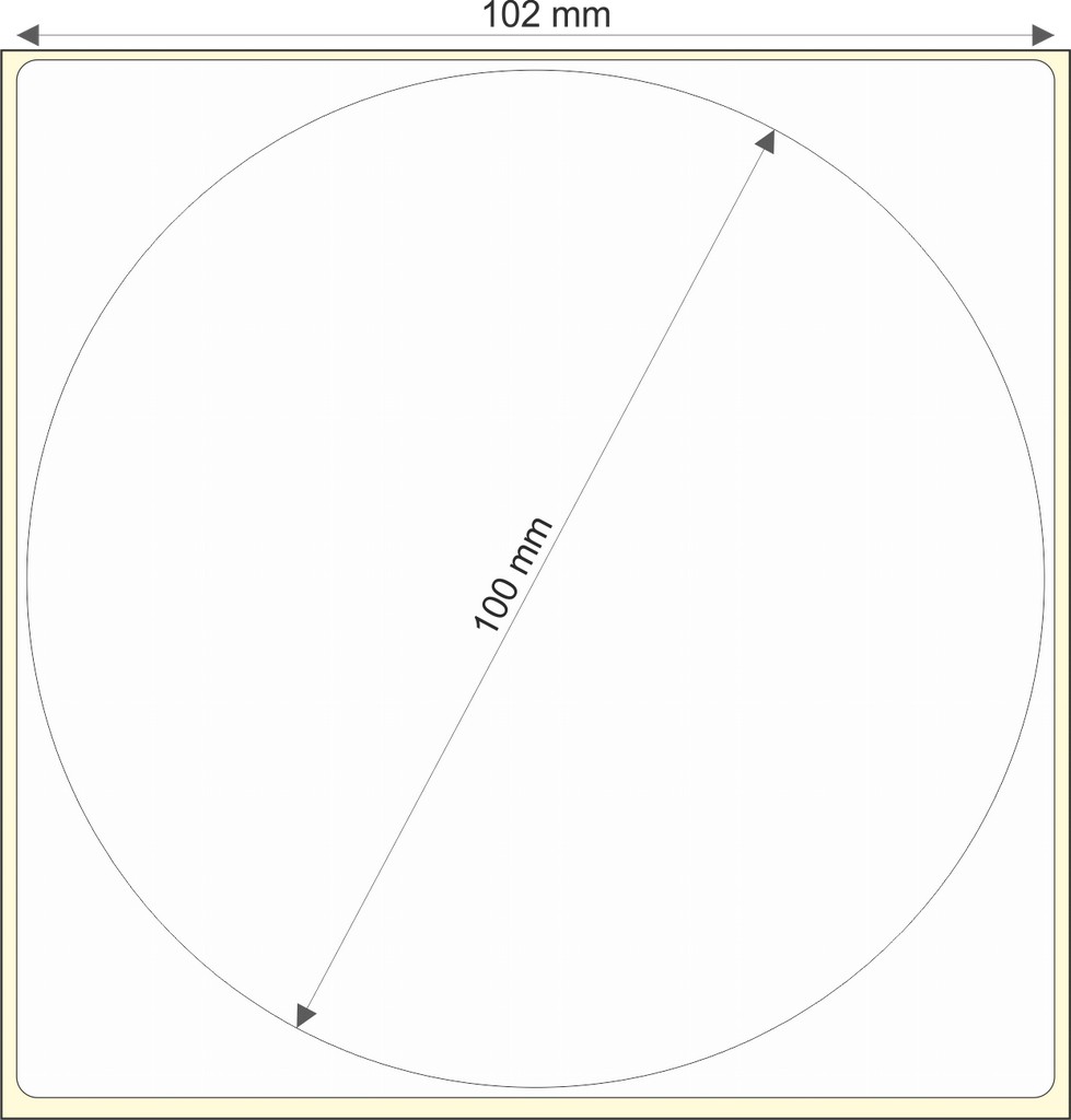 Rollo de etiquetas 102×102 mm, Papel Blanco Brillo Inkjet, Adhesivo Permanente, D Circular-Cuadrada 100, Rollos de 800 etiquetas. Presentación bobinas: Mediana – Ext 76 152