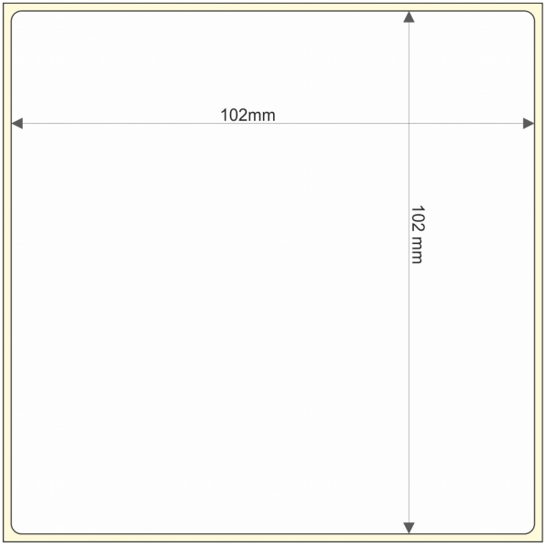 Rollo de etiquetas 102×102 mm, Papel Blanco Mate Premium Inkjet, Adhesivo Permanente, Rectangular Cantos Romos , Rollos de 325 etiquetas. Presentación bobinas: Pequeña – Ext 40 100