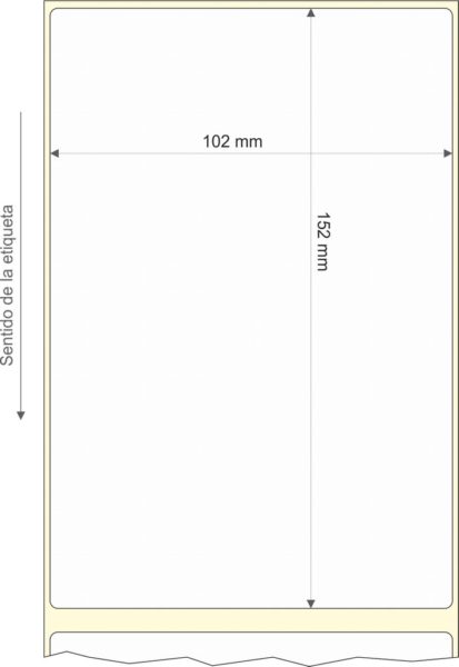 Rollo de etiquetas 102×152 mm, Papel Blanco Brillo Inkjet, Adhesivo Permanente, Rectangular Cantos Romos , Rollos de 210 etiquetas. Presentación bobinas: Pequeña – Ext 40 100