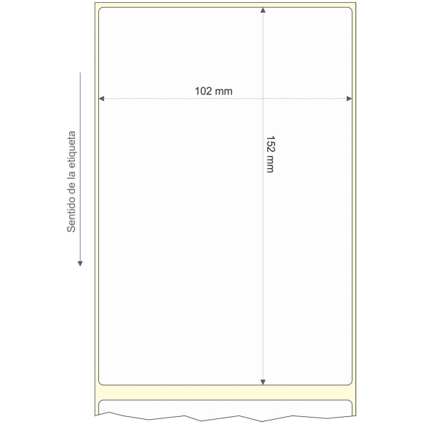 Rollo de etiquetas 102×152 mm, Papel Blanco Mate Premium Extra Inkjet, Adhesivo Permanente, Rectangular Cantos Romos , Rollos de 225 etiquetas. Presentación bobinas: Pequeña – Ext 40 100