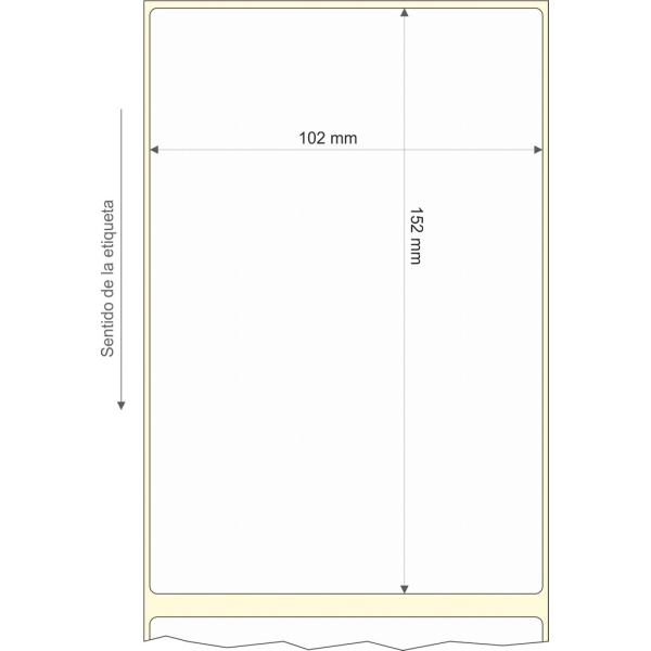 Rollo de etiquetas 102×152 mm, Papel Blanco Mate Premium Inkjet, Adhesivo Permanente, Rectangular Cantos Romos , Rollos de 425 etiquetas. Presentación bobinas: Mediana – Ext 76 152