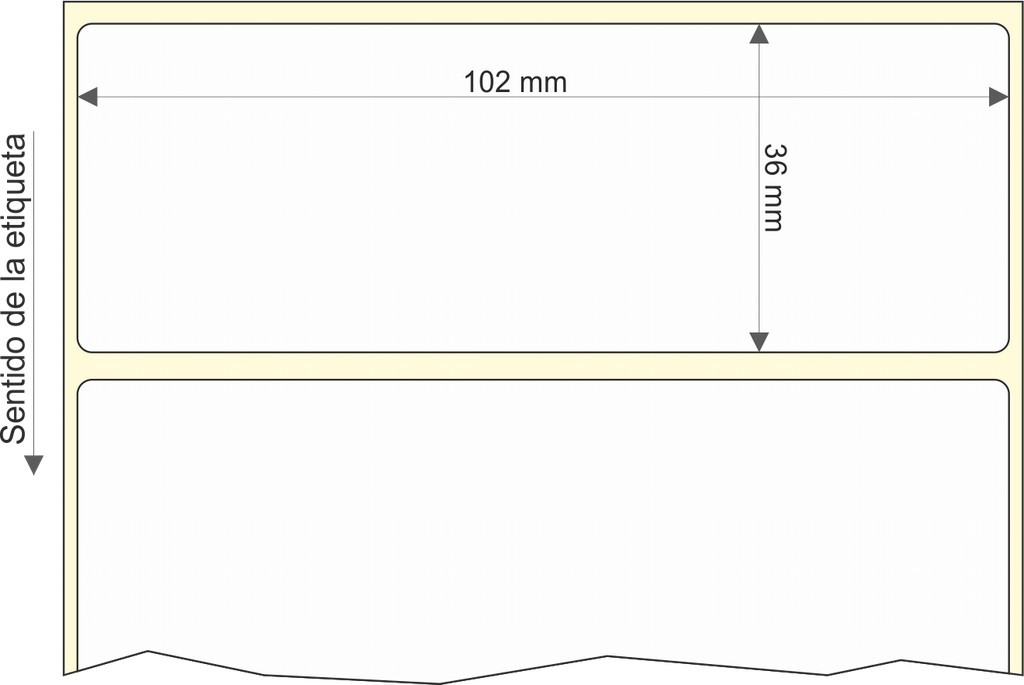 Rollo de etiquetas 102×36 mm, Papel Bco Mate, Adhesivo Permanente, Rectangular Cantos Romos , Rollos de 5.000 etiquetas. Presentación bobinas: Grande – Int 76 203