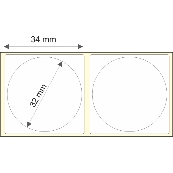| Nombre 2 Web | Rollo de etiquetas 34×34 mm, Papel Blanco Brillo Inkjet, Adhesivo Permanente, D Circular-Cuadrada 32, Rollos de 1.500 etiquetas. Presentación bobinas: Pequeña – Ext 40 100 |
