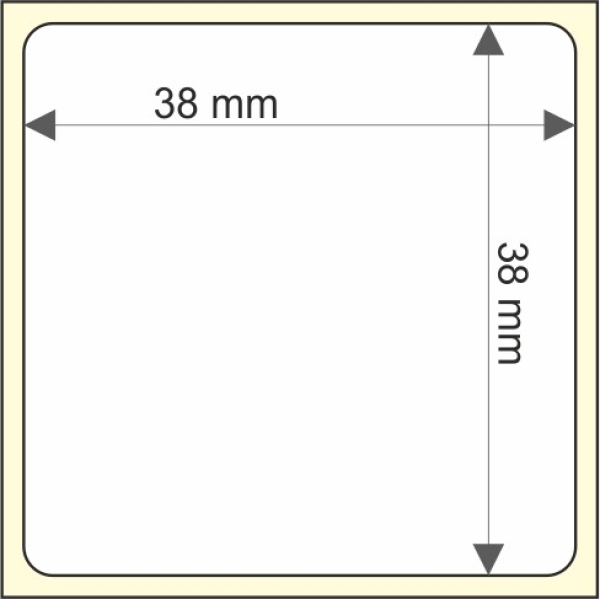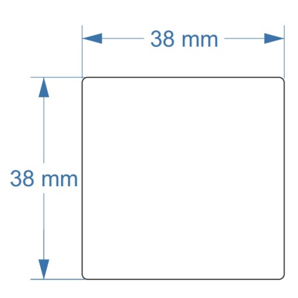 Rollo de etiquetas 38×38 mm, Papel Blanco Mate Premium Extra Inkjet, Adhesivo Permanente, Rectangular Cantos Romos , Rollos de 1.600 etiquetas. Presentación bobinas: Mediana – Ext 76 152