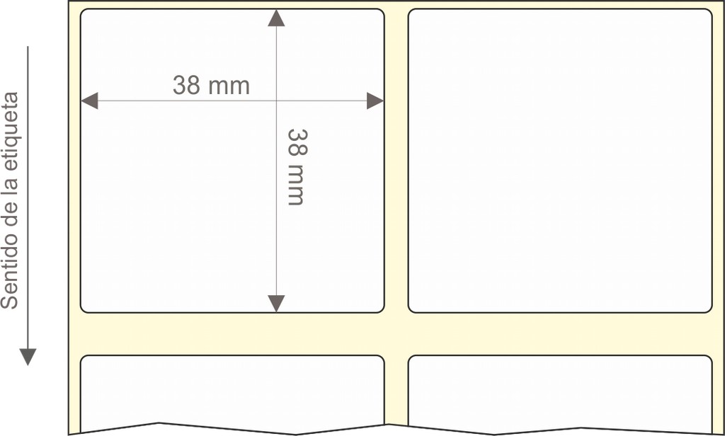 Rollo de etiquetas 38×38 mm, Papel Blanco Mate Premium Extra Inkjet, Adhesivo Permanente, Rectangular Cantos Romos , Rollos de 1.600 etiquetas. Presentación bobinas: Pequeña – Ext 40 100