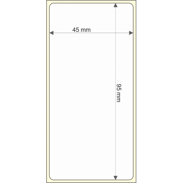 Rollo de etiquetas 45×95 mm, Papel Blanco Mate Premium Extra Inkjet, Adhesivo Permanente, Rectangular Cantos Romos , Rollos de 650 etiquetas. Presentación bobinas: Mediana – Ext 76 152