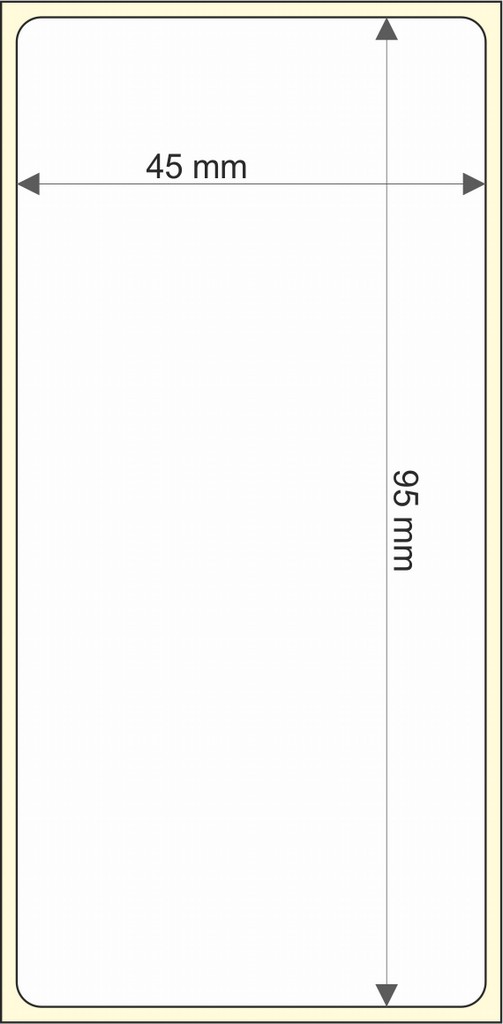 Rollo de etiquetas 45×95 mm, Papel Blanco Mate Premium Extra Inkjet, Adhesivo Permanente, Rectangular Cantos Romos , Rollos de 650 etiquetas. Presentación bobinas: Mediana – Ext 76 152