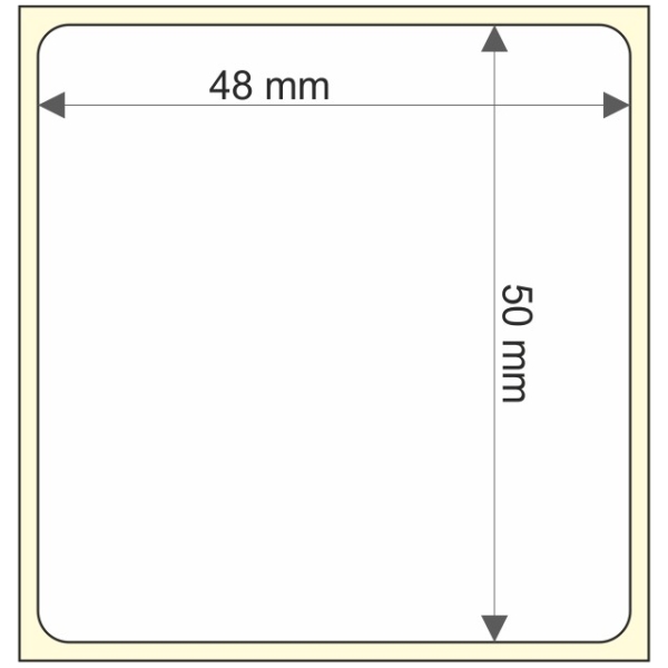 Rollo de etiquetas 48×50 mm, Papel Blanco Brillo Inkjet, Adhesivo Permanente, Rectangular Cantos Romos , Rollos de 650 etiquetas. Presentación bobinas: Pequeña – Ext 40 127