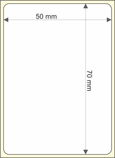 Rollo de etiquetas 50×70 mm, Papel Blanco Mate Premium Extra Inkjet, Adhesivo Permanente, Rectangular Cantos Romos , Rollos de 900 etiquetas. Presentación bobinas: Mediana – Ext 76 152