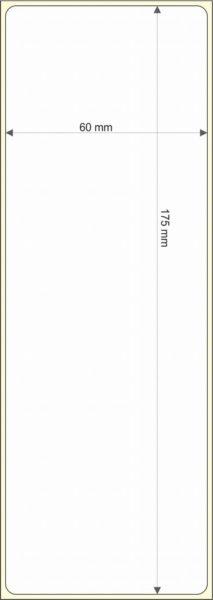 Rollo de etiquetas 60×175 mm, Papel Blanco Brillo Inkjet, Adhesivo Perm. Fuerte, Rectangular Cantos Romos , Rollos de 250 etiquetas. Presentación bobinas: Pequeña – Ext 40 127
