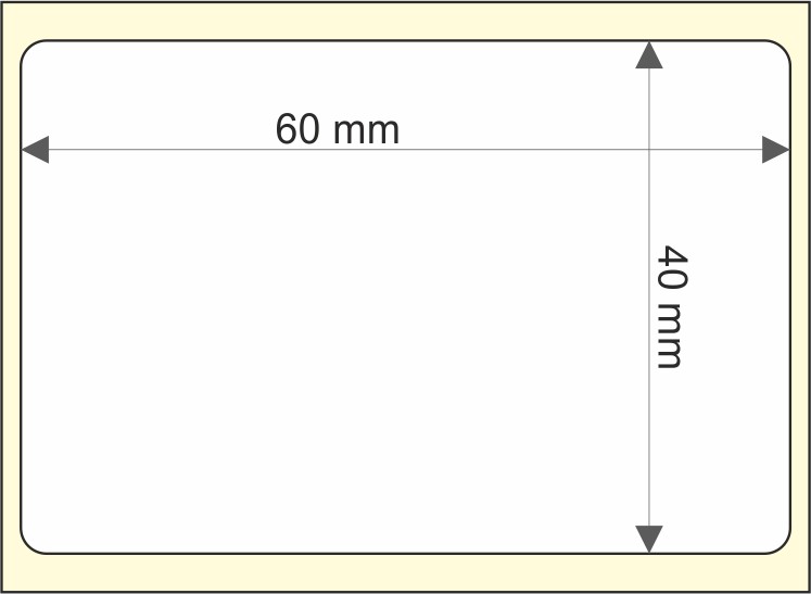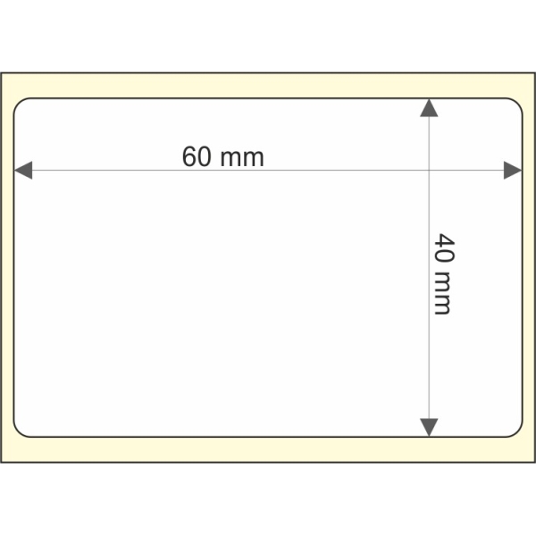 Rollo de etiquetas 60×40 mm, Papel Blanco Brillo Inkjet, Adhesivo Permanente, Rectangular Cantos Romos , Rollos de 1.500 etiquetas. Presentación bobinas: Mediana – Ext 76 152