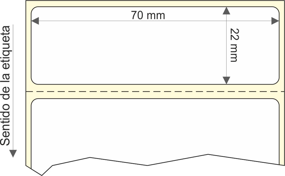 Rollo de etiquetas 70×22 mm, Pp Bco Mate Inkjet, Adhesivo Perm. Muy Fuerte, Rectangular Cantos Romos , Rollos de 1.000 etiquetas. Presentación bobinas: Pequeña – Ext 40 127