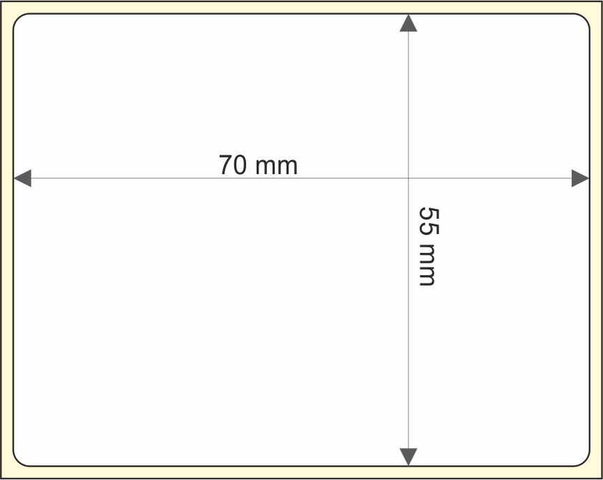 Rollo de etiquetas 70×55 mm, Papel Blanco Brillo Inkjet, Adhesivo Permanente, Rectangular Cantos Romos , Rollos de 1.250 etiquetas. Presentación bobinas: Mediana – Ext 76 152