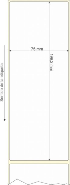Rollo de etiquetas 75×199,2 mm, Papel Blanco Brillo Inkjet, Adhesivo Permanente, Rectangular Cantos Romos , Rollos de 700 etiquetas. Presentación bobinas: Grande – Ext 76 203