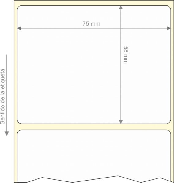 Rollo de etiquetas 75×58 mm, Papel Blanco Brillo Inkjet, Adhesivo Permanente, Rectangular Cantos Romos , Rollos de 2.000 etiquetas. Presentación bobinas: Grande – Int 76 203