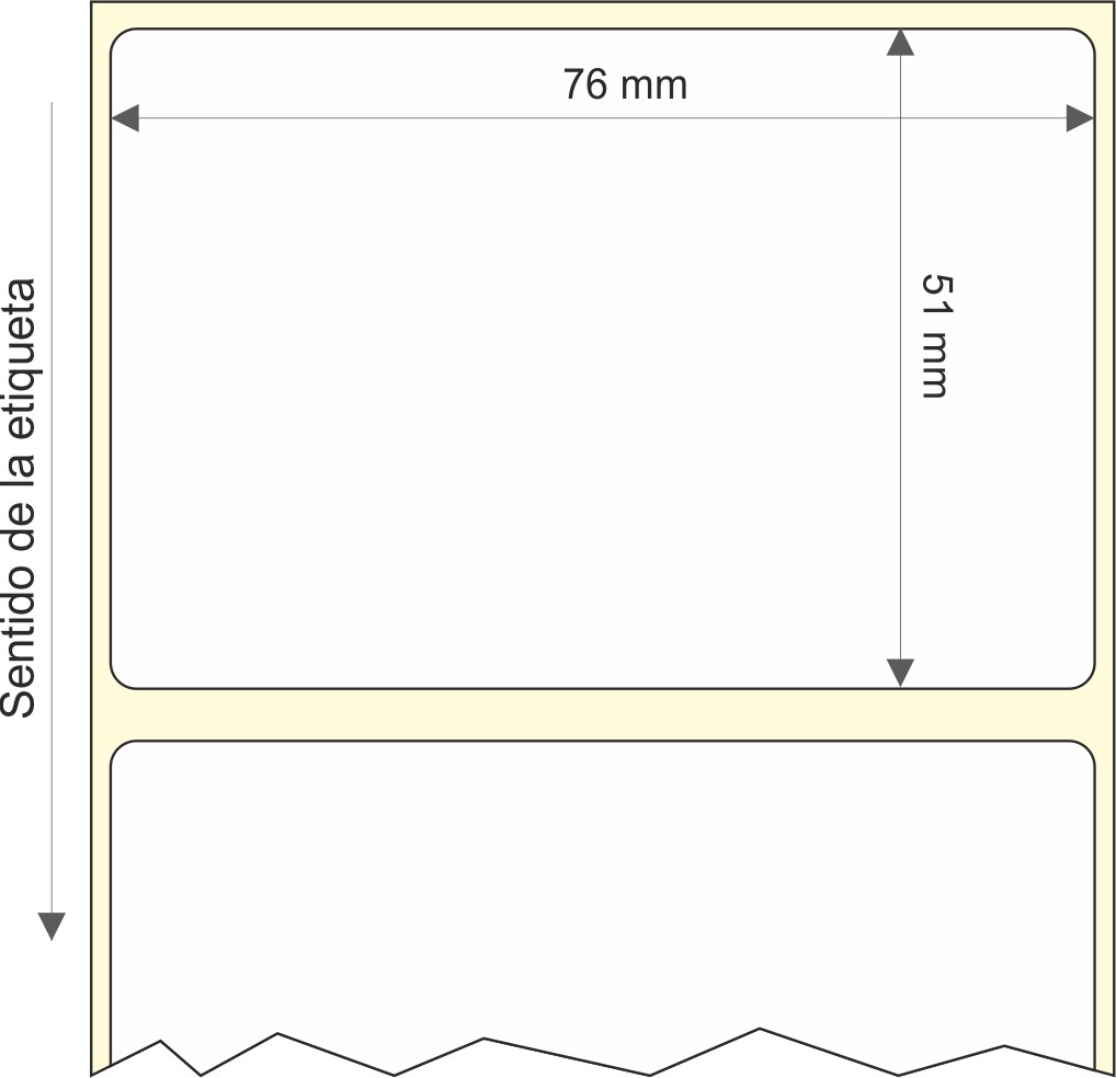 Rollo de etiquetas 76×51 mm, Papel Blanco Mate Premium Inkjet, Adhesivo Permanente, Rectangular Cantos Romos , Rollos de 650 etiquetas. Presentación bobinas: Pequeña – Ext 40 100