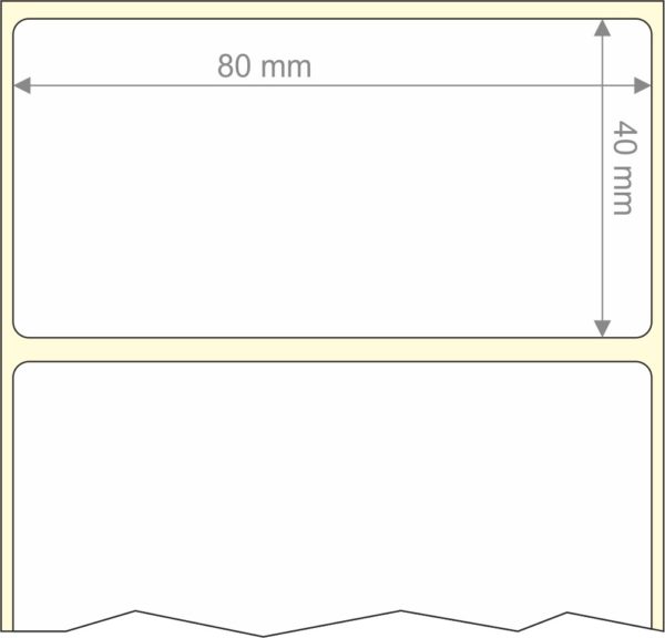 Rollo de etiquetas 80×39,8 mm, Papel Blanco Mate Premium Extra Inkjet, Adhesivo Permanente, Rectangular Cantos Romos , Rollos de 800 etiquetas. Presentación bobinas: Pequeña – Ext 40 127