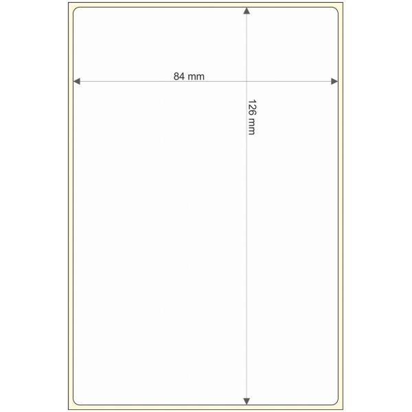 Rollo de etiquetas 84×126 mm, Papel Blanco Brillo Inkjet, Adhesivo Permanente, Rectangular Cantos Romos , Rollos de 250 etiquetas. Presentación bobinas: Pequeña – Ext 40 100